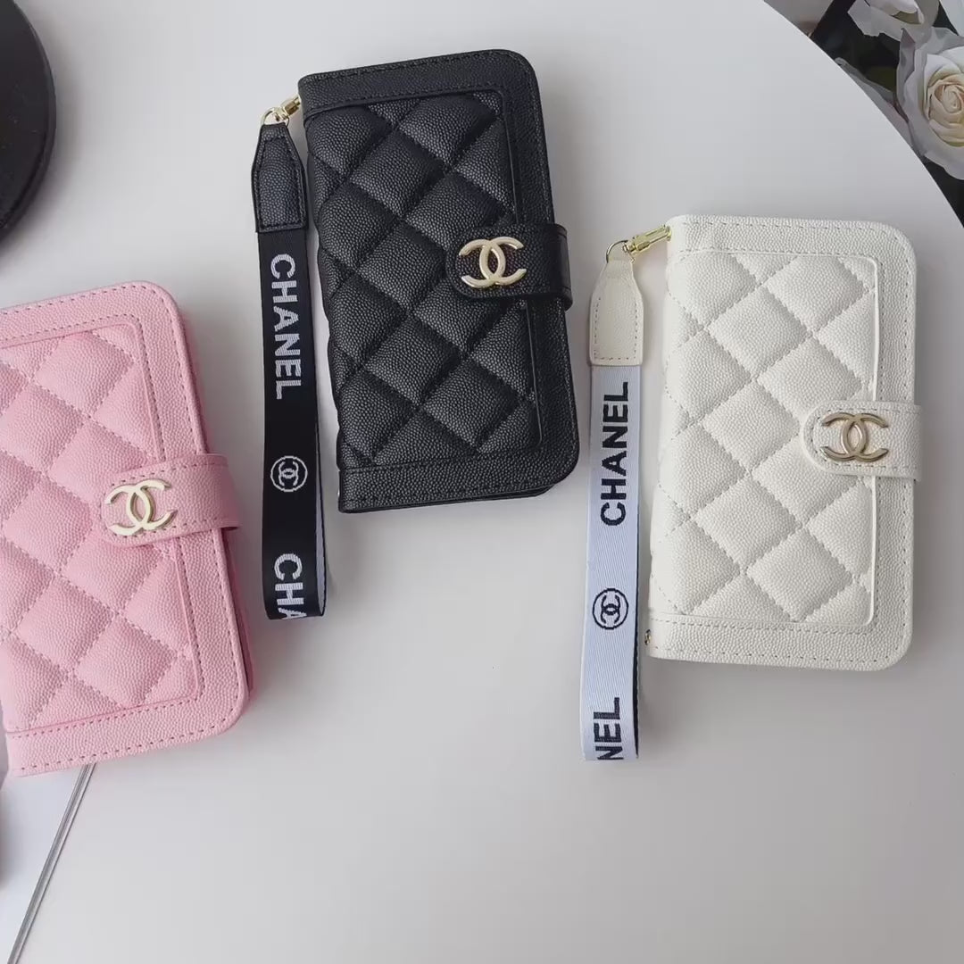Chanel embroidered leather case iPhone 11-17PM, Samsung models S22-S25U
