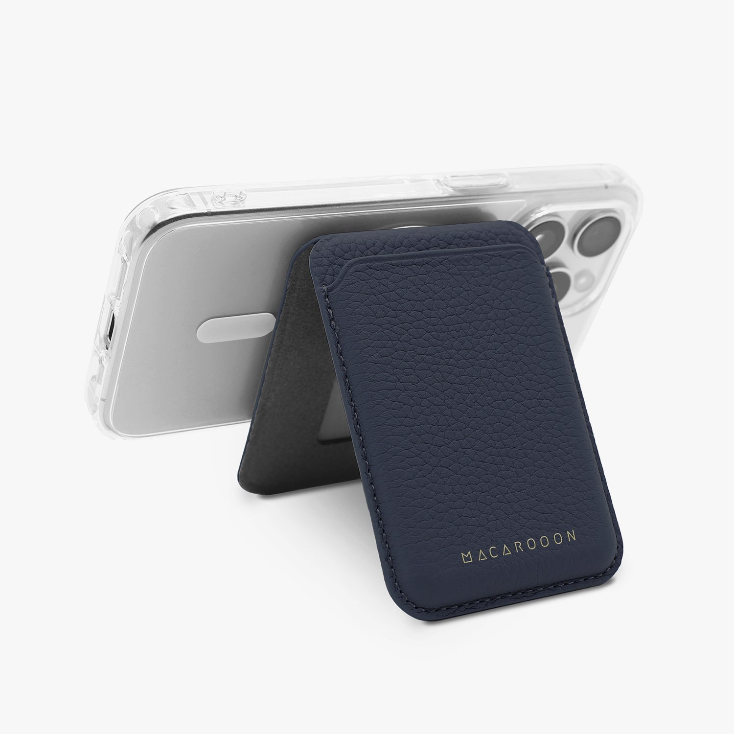 An extra pocket for your iPhone that keeps your cards or cash close to you. Our Leather MagSafe Wallet with Stand features built-in magnets that will snap on the back of your iPhone easily, and will act as a phone stand when needed.